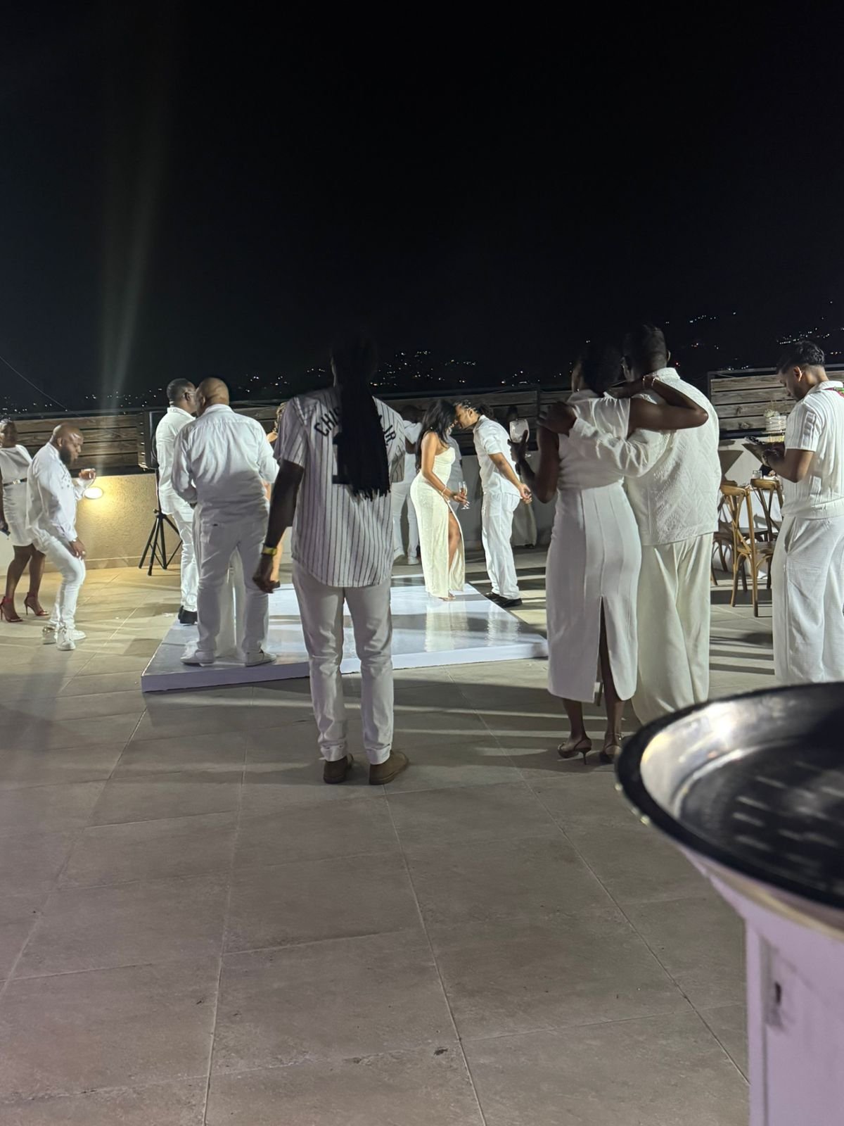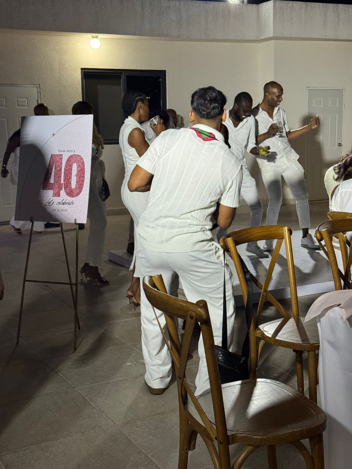 Guests dressed in white celebrate on the dance floor during Dr Rasheka Brown Birthday Party. (Photo taken: December 6, 2025)