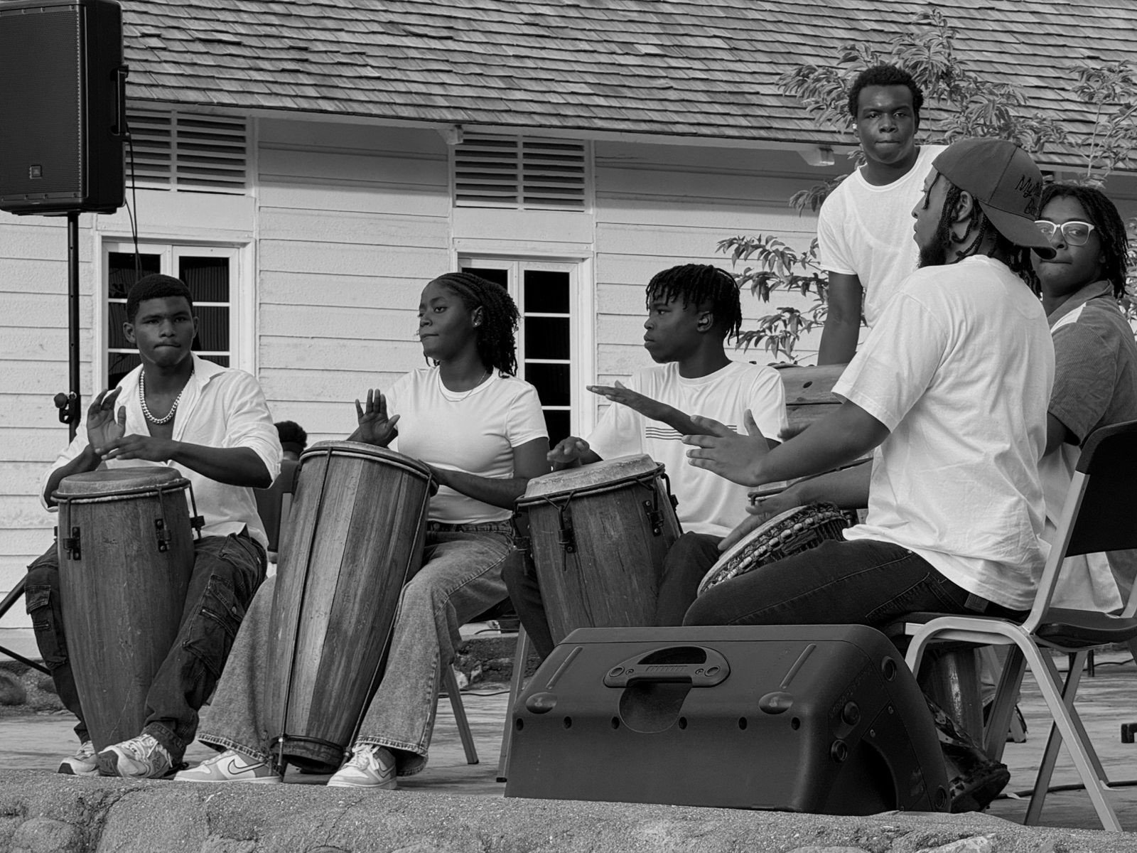 A group of percussionists maintains a traditional beat during Utech Carol in the Park Event. (Photo taken: November 28, 2025)