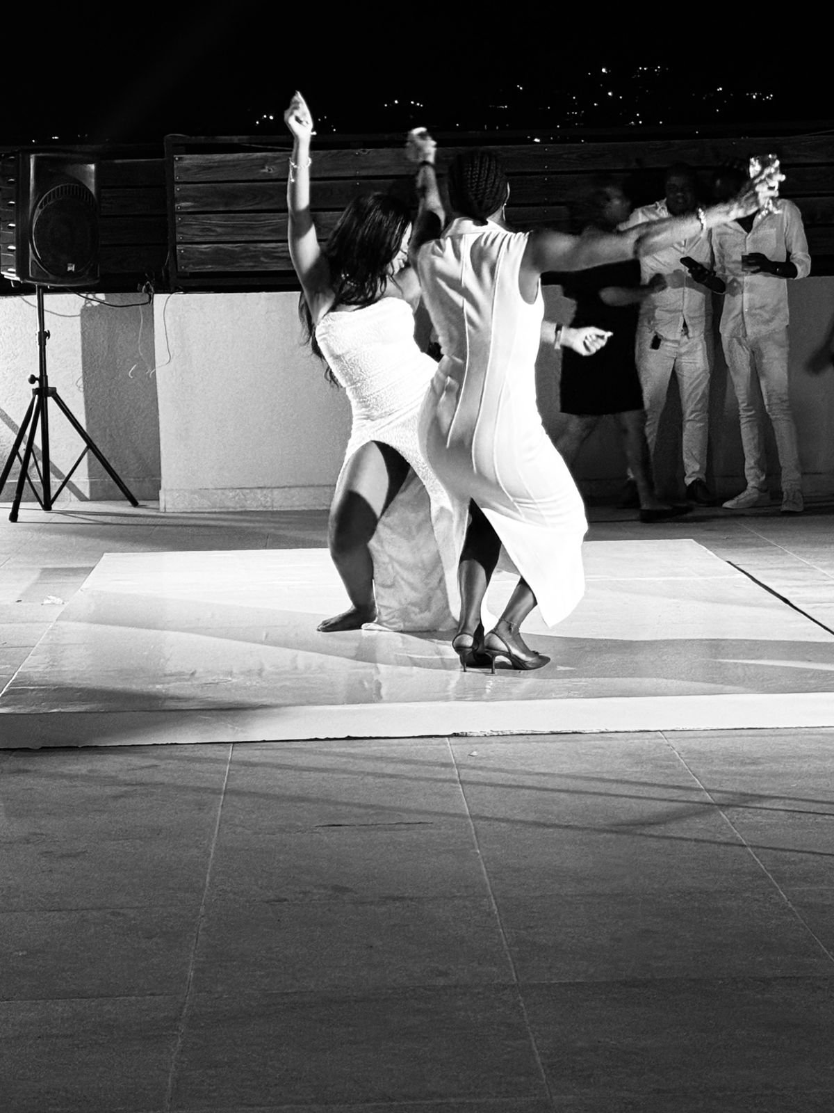 Dancers perform a coordinated routine, utilizing the play of light and shadow on the stage at Dr Rasheka Brown’ Birthday. (Photo taken: December 6, 2025)