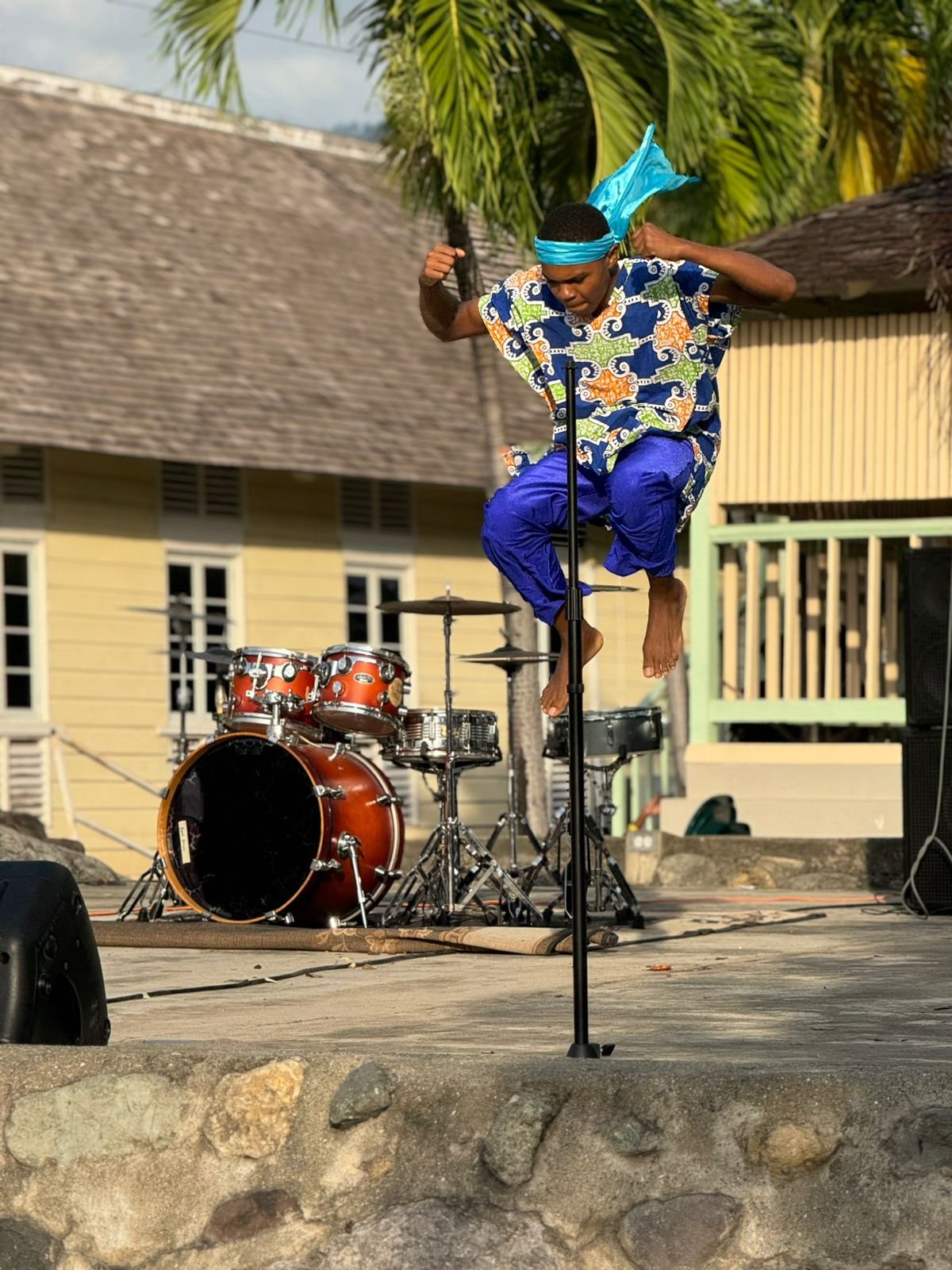 A focused close-up of a local artist during a high-energy performance during Utech Carol in the Park Event. (Photo taken: November 28, 2025)