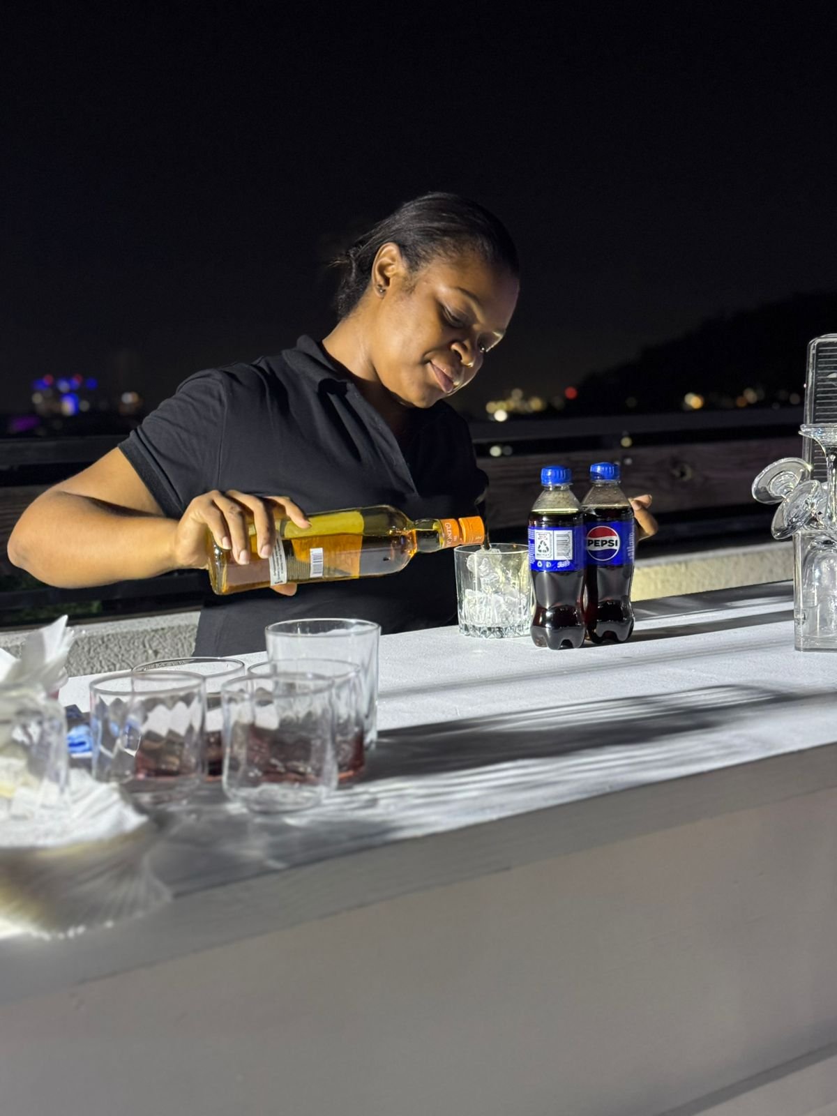 A professional bartender prepares signature refreshments for guests at the evening reception. (Photo taken: December6, 2025)
