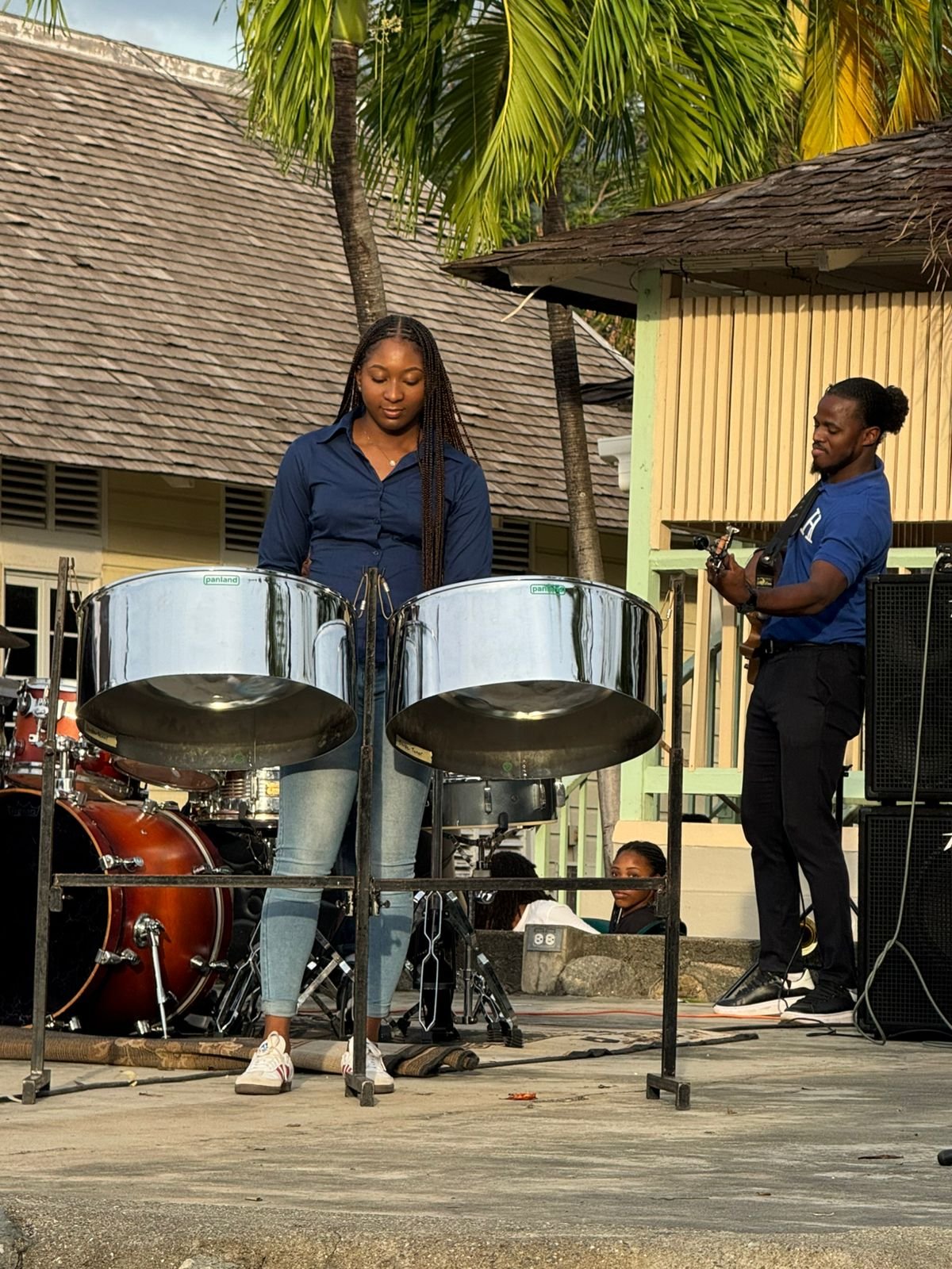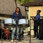 A dedicated musician by the name of Jada Brown performs a rhythmic melody on the steel pan during Utech Carol in the Park Event. (Photo taken: November 28, 2025)
